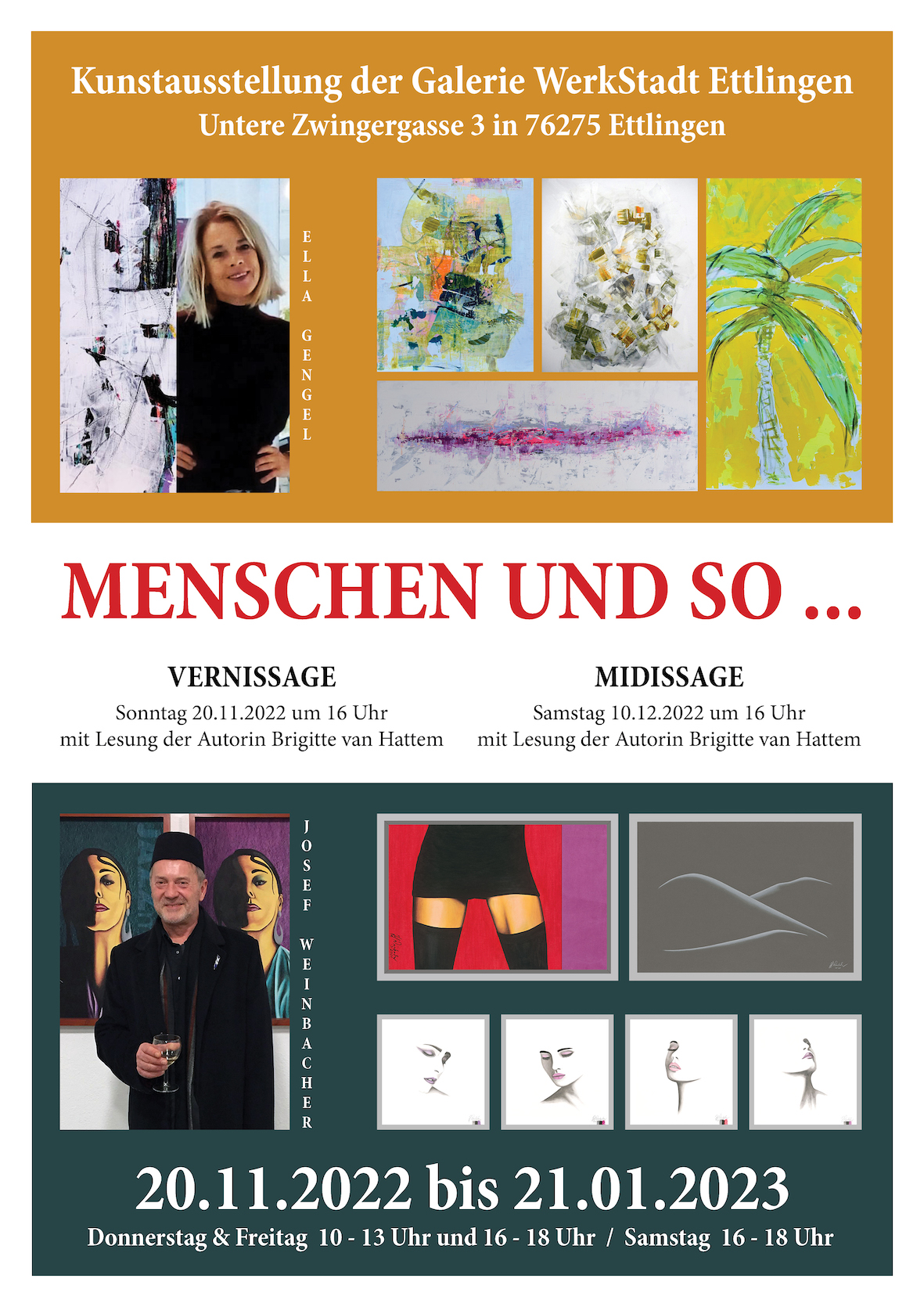 Vernissage: 20.11.2022 16 Uhr mit einer Lesung der bekannten Autorin Brigitte van Hattem